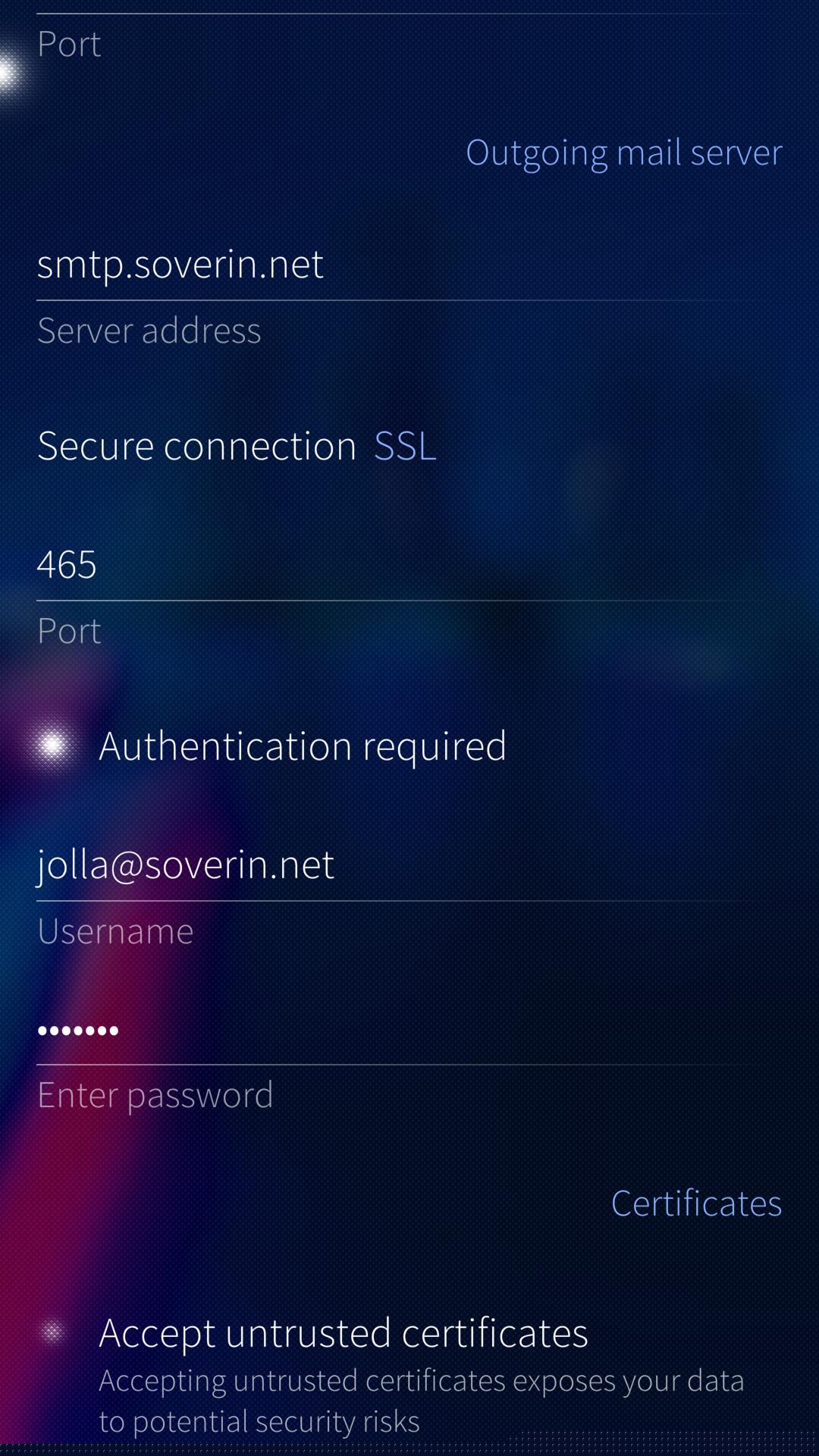 We recommend leaving “Accept untrusted certificates” OFF unless you fully understand the potential security risks.