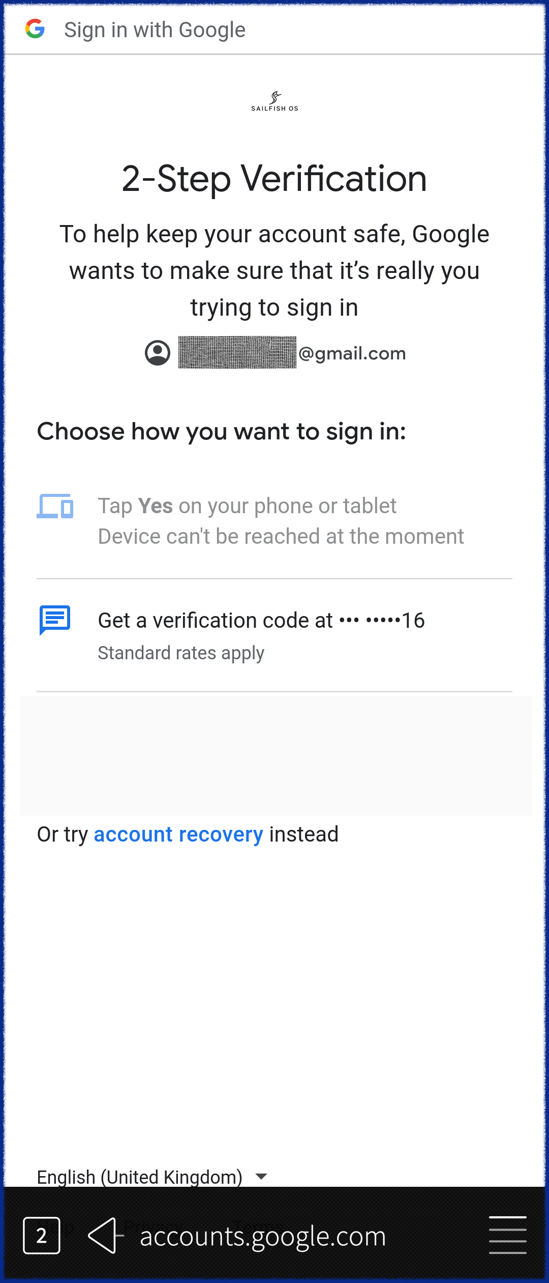 If you have enabled the 2-step verification on your Google account then the page somewhat similar to the example below will appear. If you do not use the 2-step verification, jump to chapter 5, please.