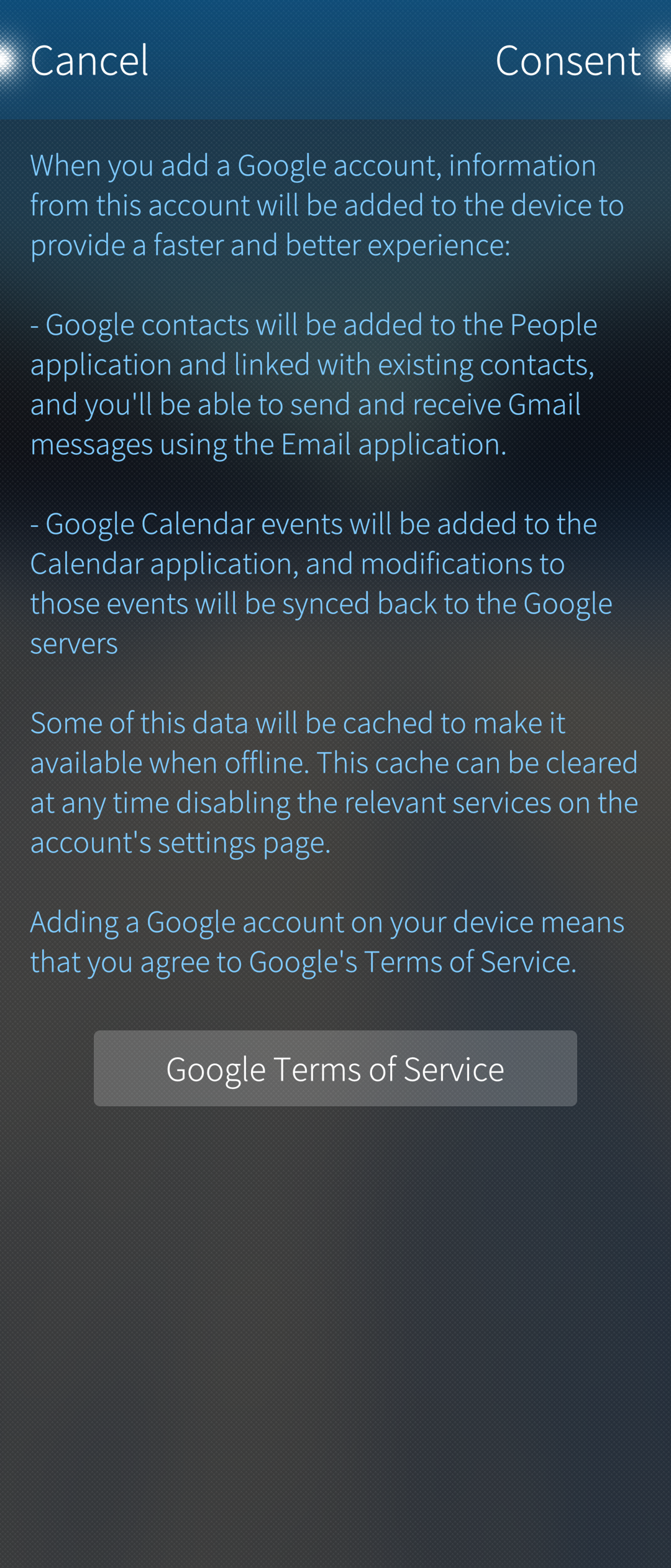 The text below will appear. View the Google Terms of Service” by tapping the large button.