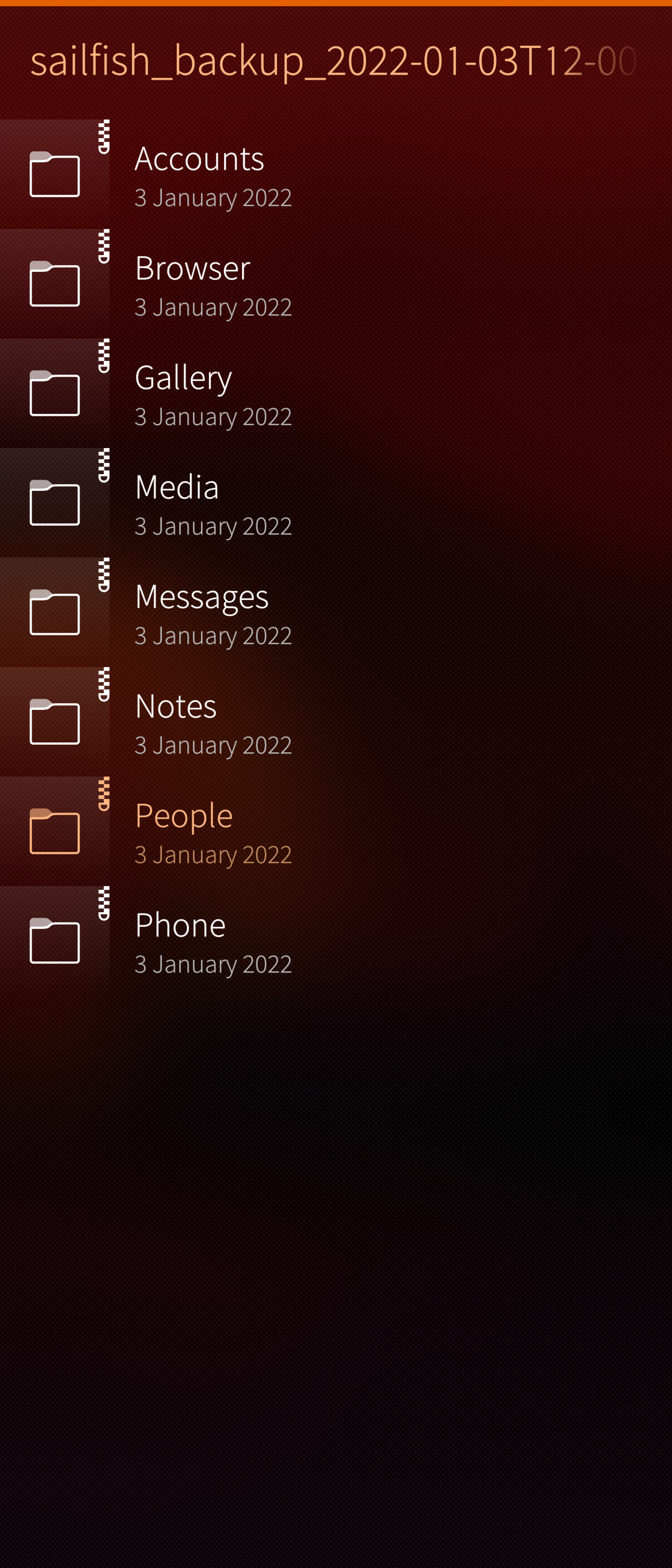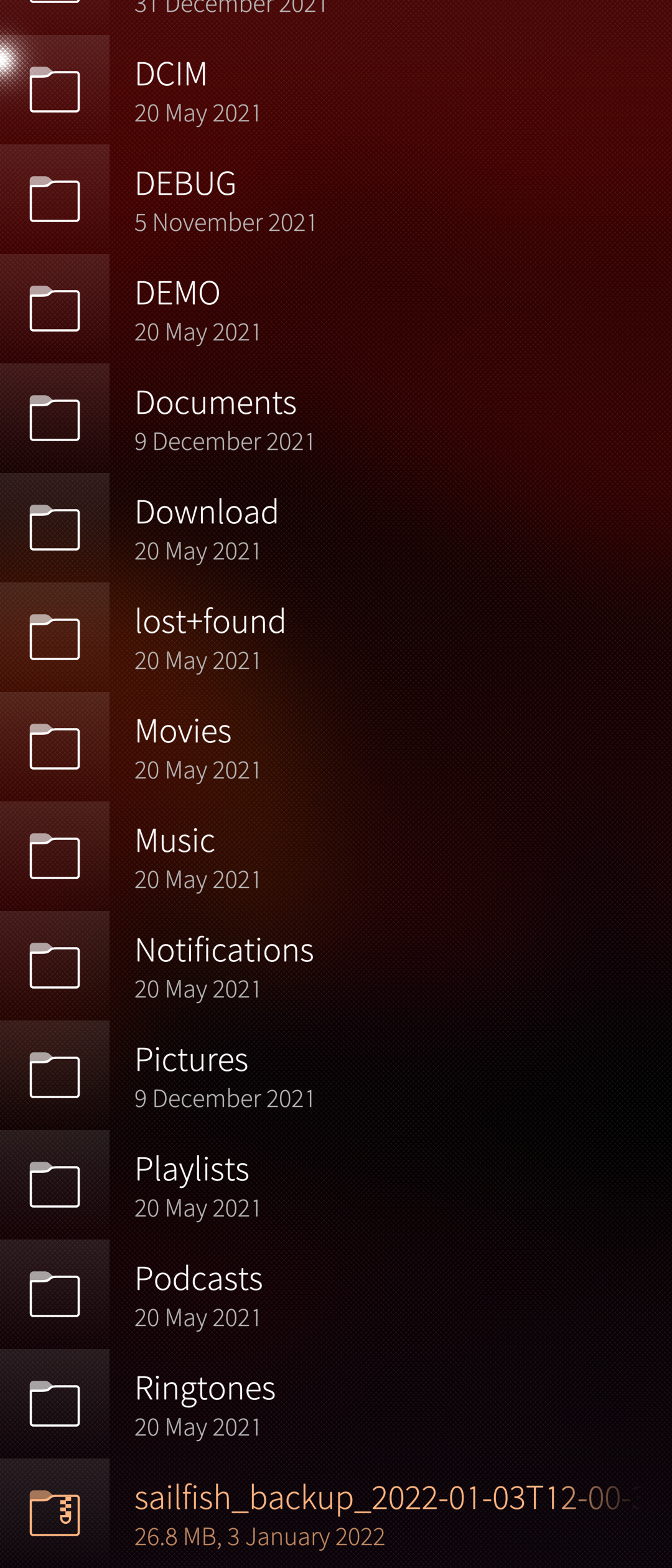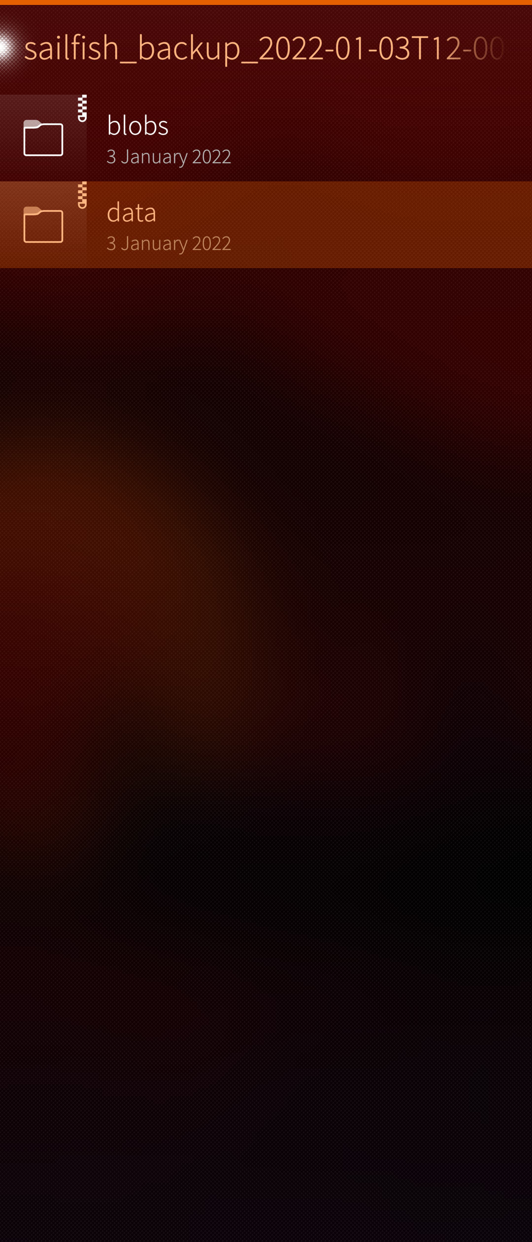 - Look for your sailfish_backup files in the end of the listing. Tap the one you want. Pay attention to the date and time to select the correct one (if there are several).