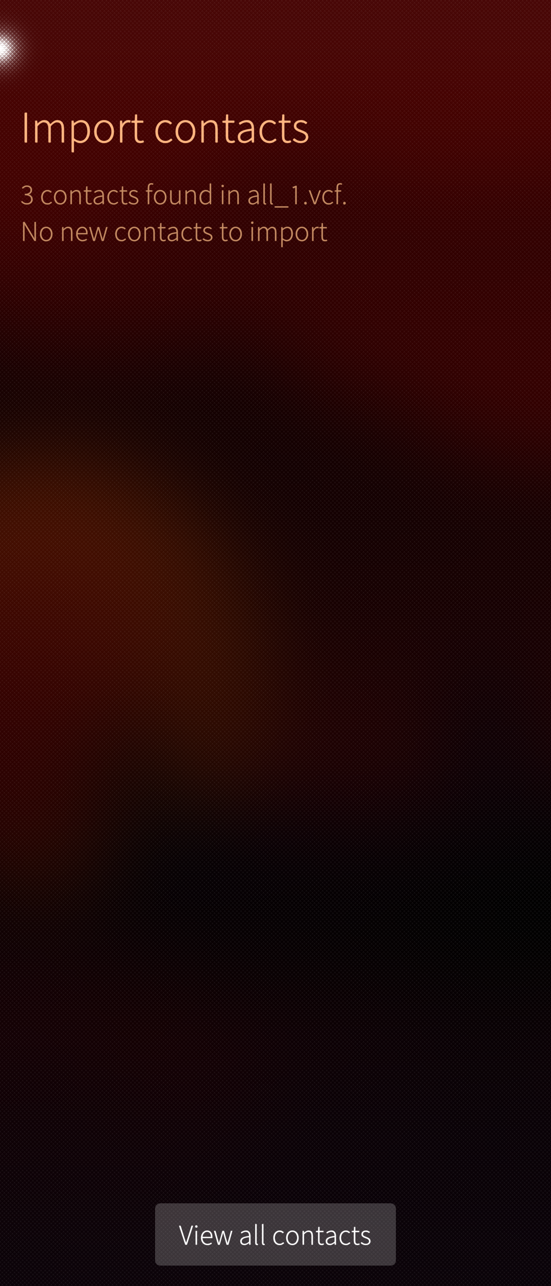 6) Tap all.vcf . People app opens up. It tells how many contacts there were in that vcf file and how many new contacts were added to People app. Those contacts were automatically imported.