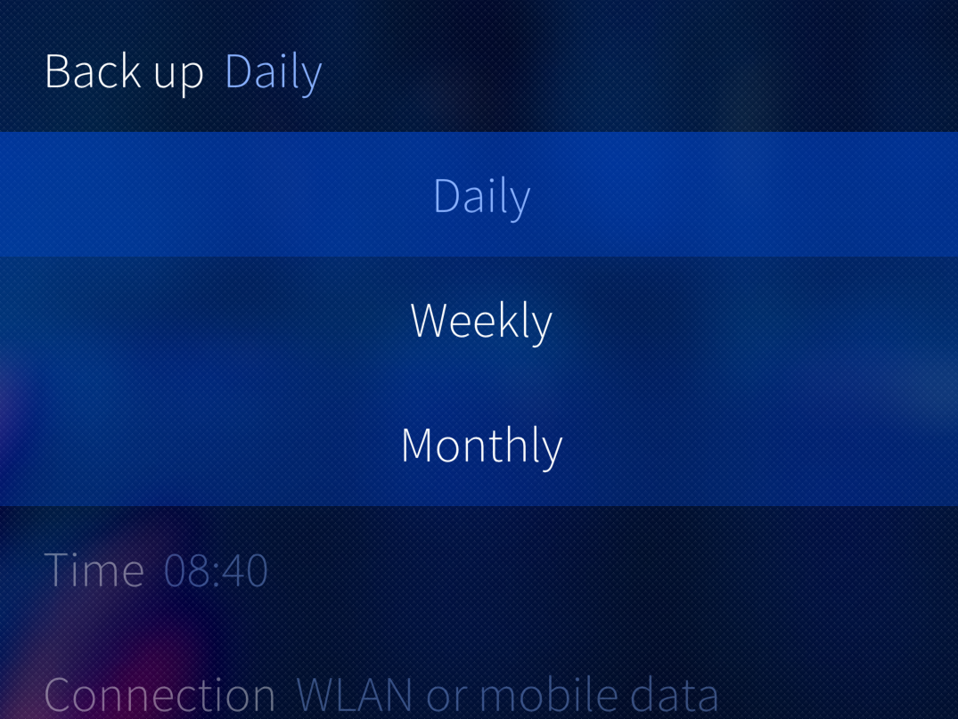 4. Tap “Time” to select the time of the day when the backup is created (no picure about this).