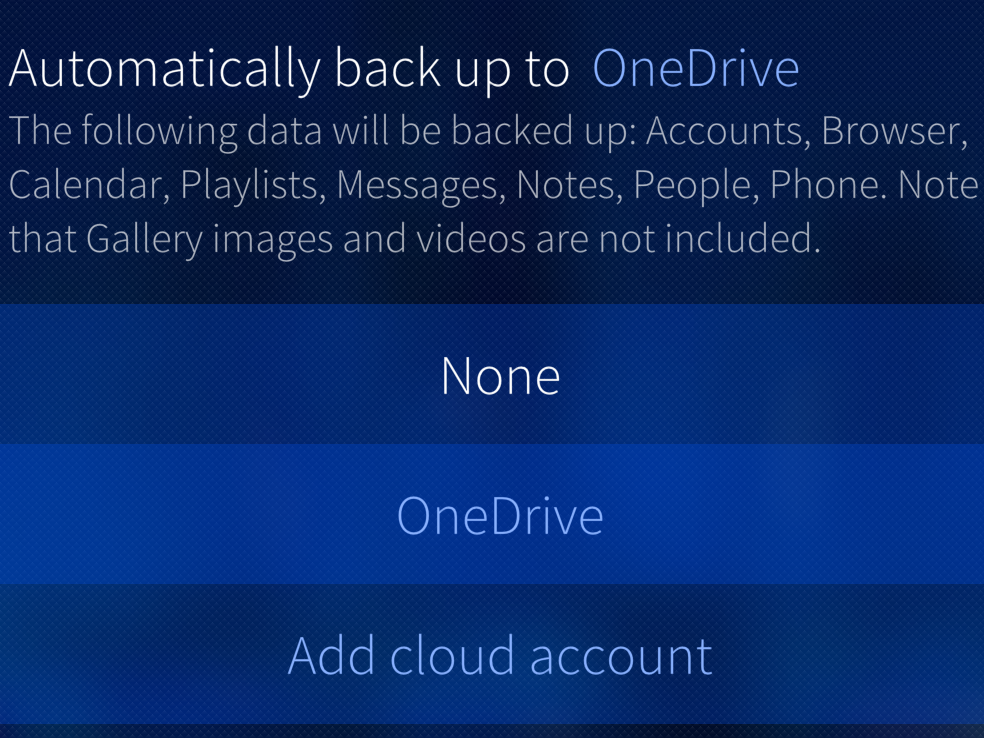 NOTE: Gallery photos and videos are not saved to cloud backups.
