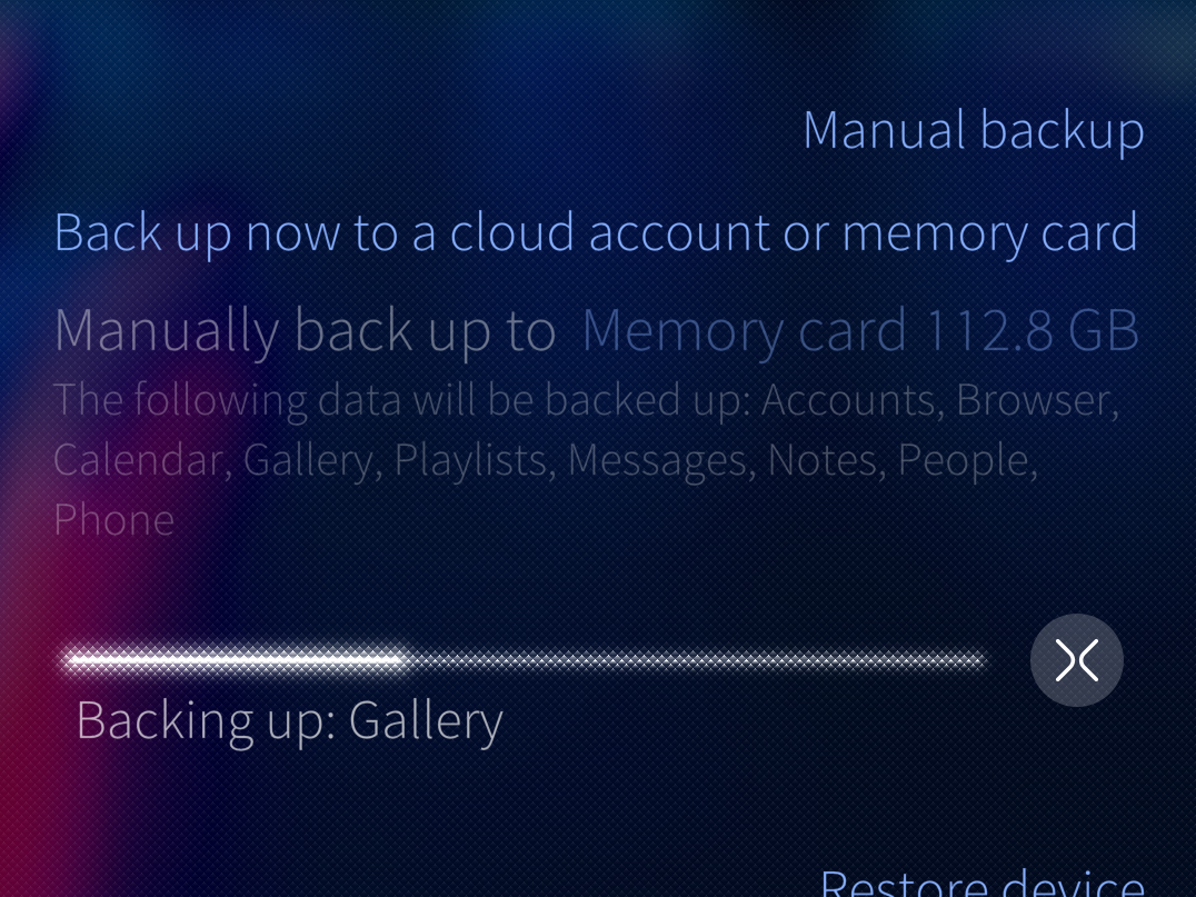 6. Tap on “Manually back up to” and select “Memory card”. Tap “Back up now” and the progress bar appears.