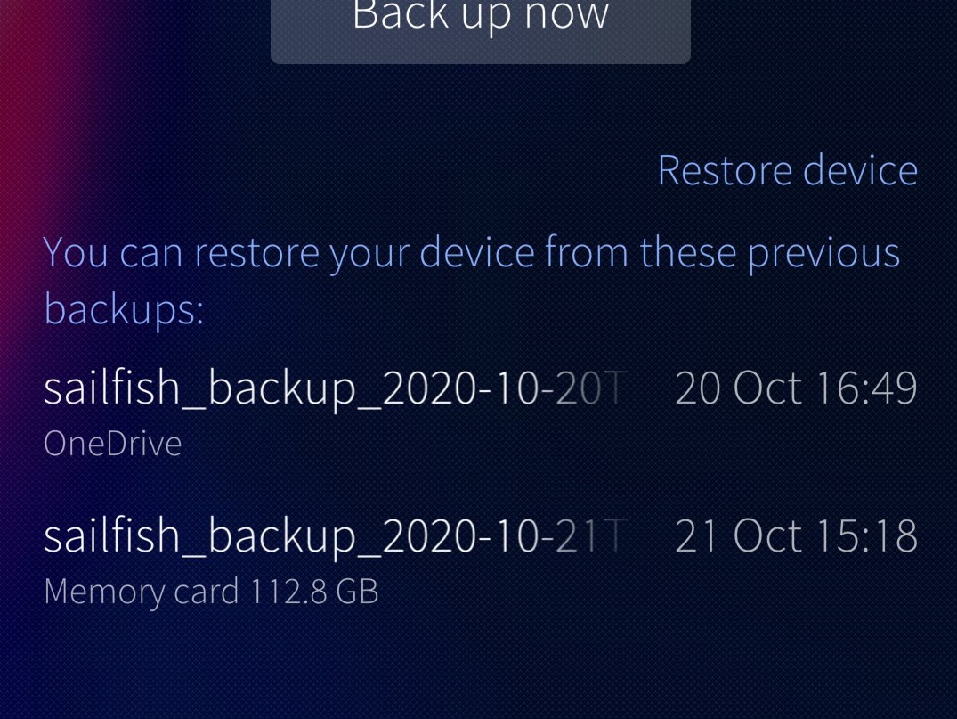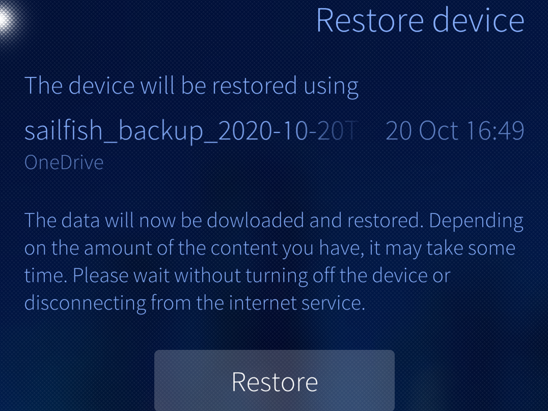 Backup prior to factory reset and prior to reinstalling Sailfish