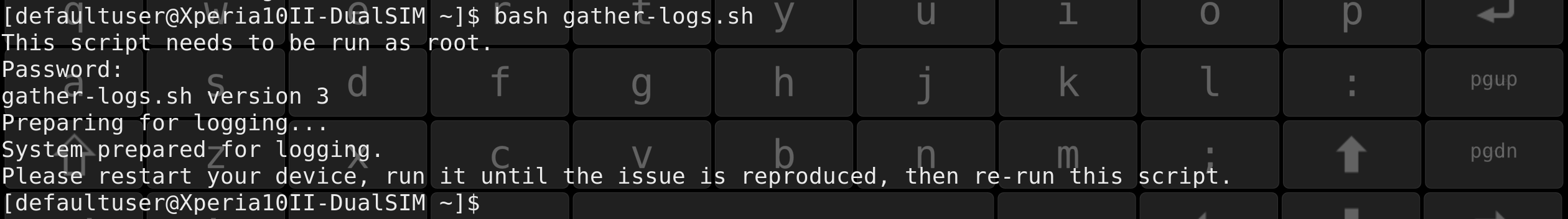 The purpose of this round is to make your phone ready for collecting logs before the problem occurs again. The journal log is made persistent, so that it would survive over a potential reboot of the device.