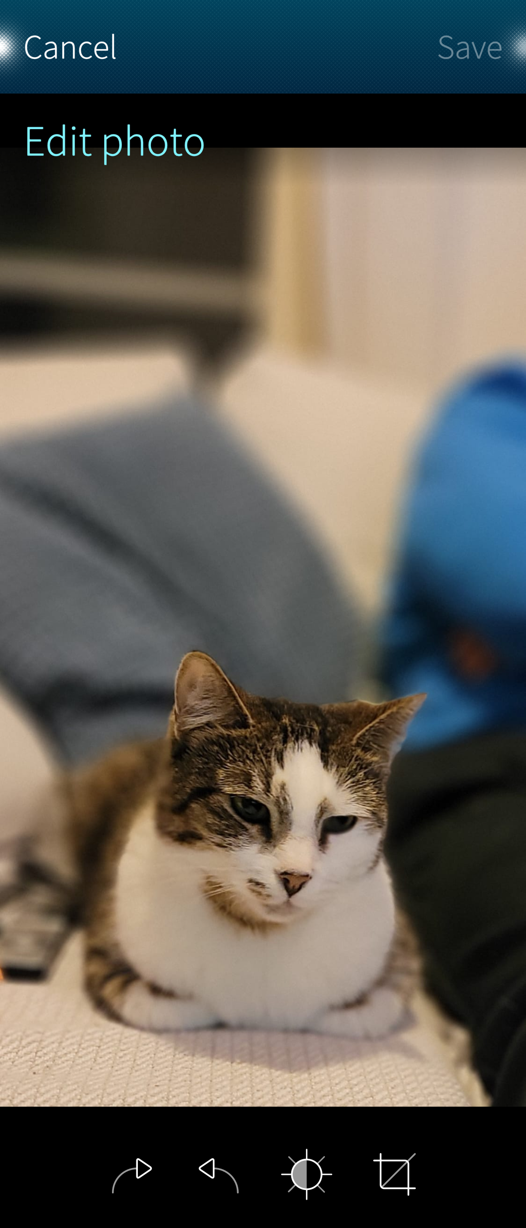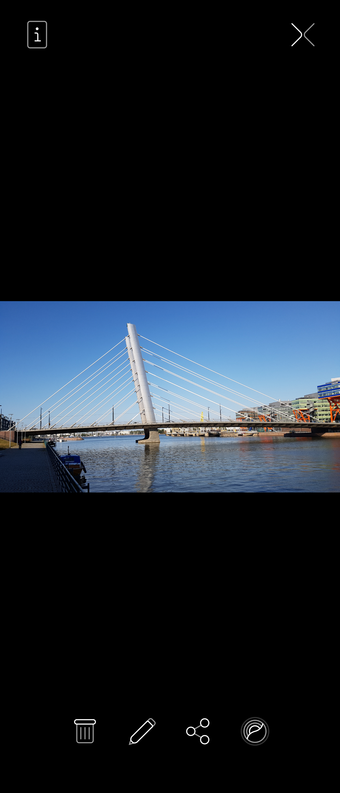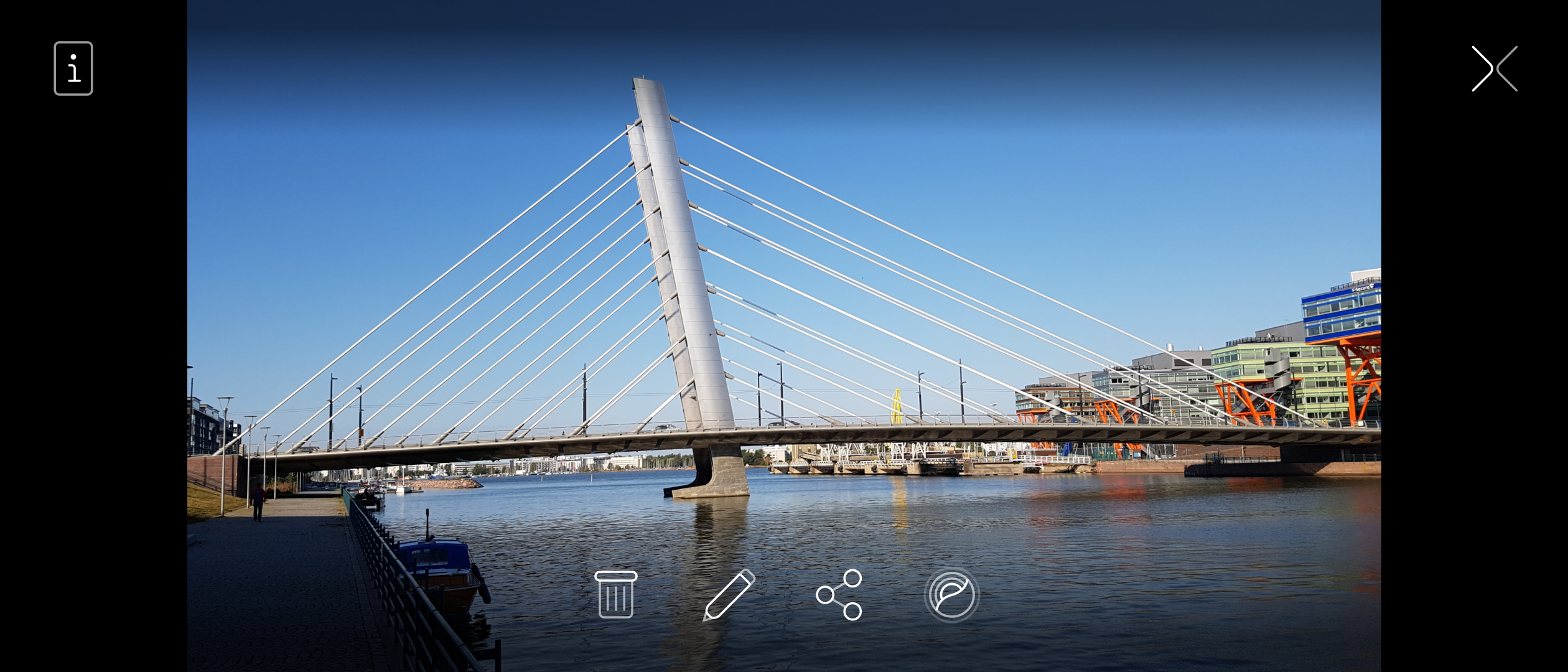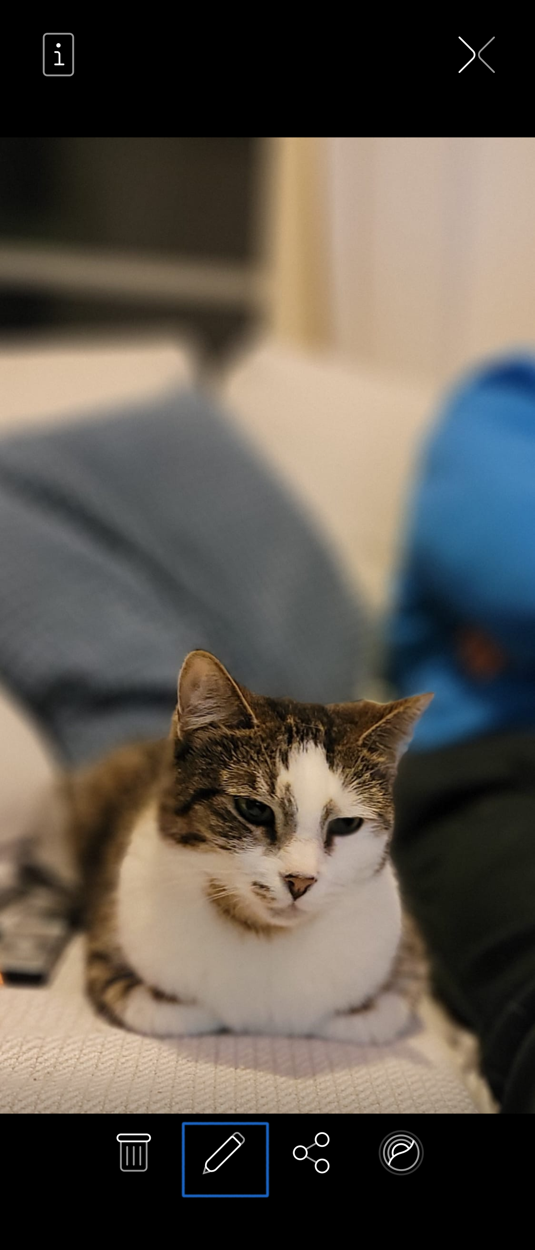 Open one photo. Tap the pen button in the toolbar below the image. The edit mode gets active. The editing toolbar appears at the bottom. It has the following tools:
