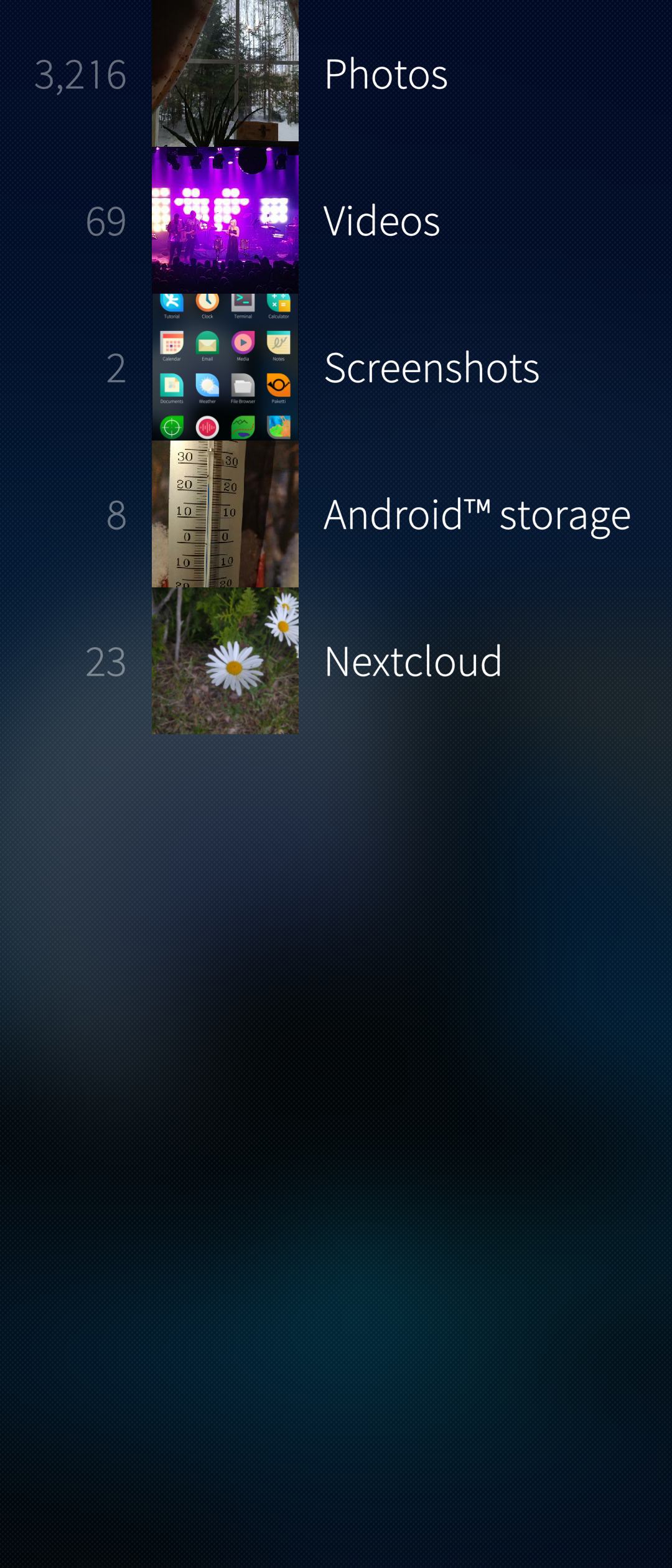 The picture above shows the home view of the Gallery with the folders. The last one of them has the pictures uploaded to the cloud service Nextcloud and the one above it shows pictures in the Android storage area of the phone. Screenshots are shown from the folder Pictures > Screenshots.