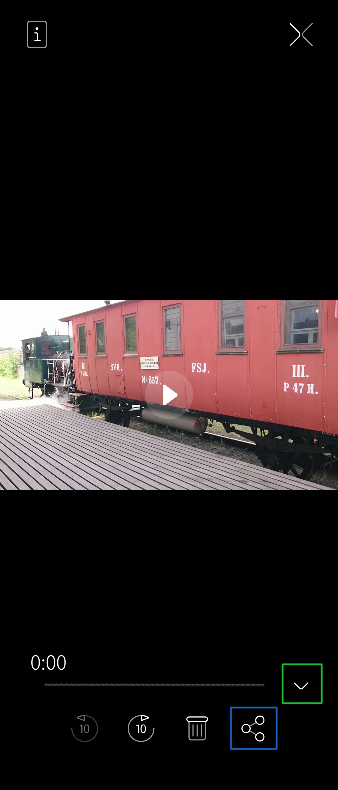It is possible to share only one photo or video at a time. This can be done when viewing one single photo or video. There “Share” button is located in the toolbar below the photo or video. It is indicated with a blue rectangle in the pictures below.