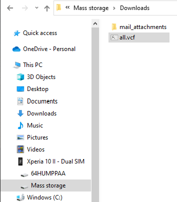 9) Using the File Manager on the PC, copy the ALL.vcf file to the Downloads folder on the phone.