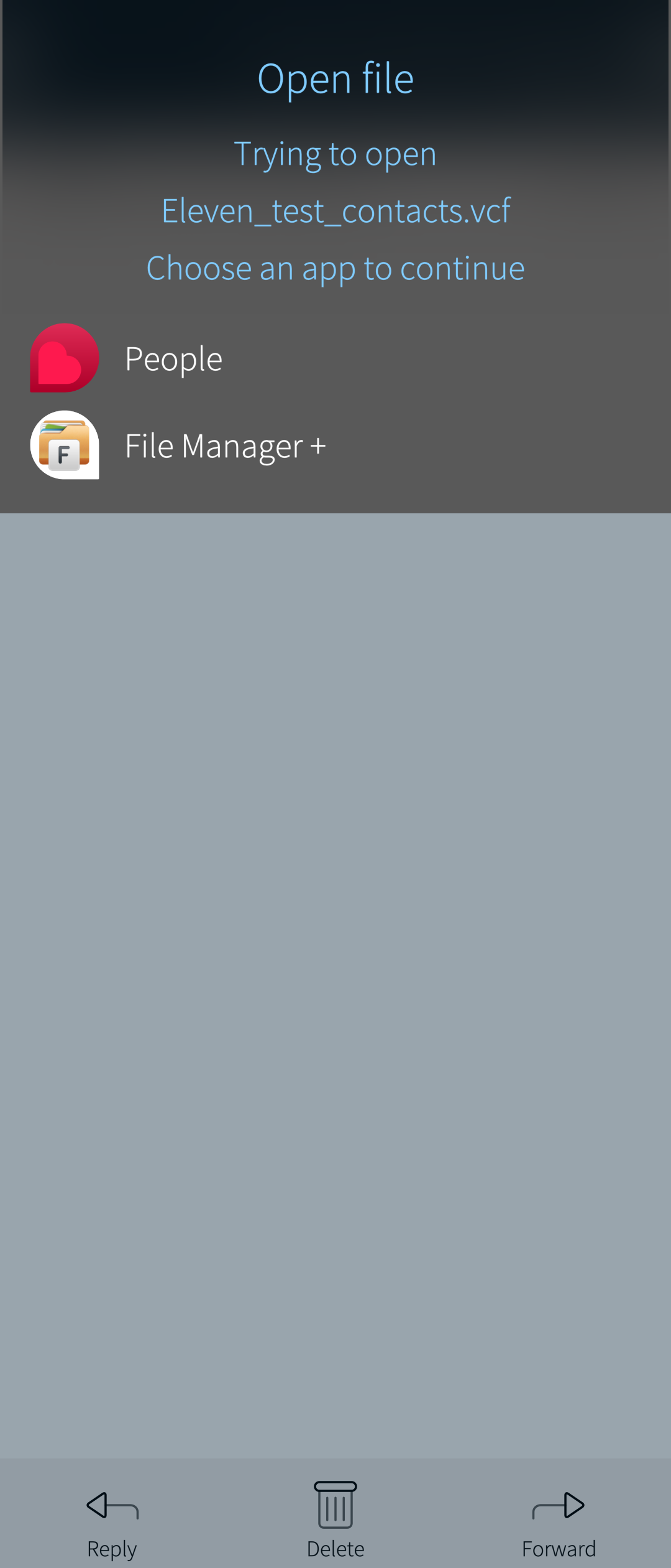 8) Tap “People” on the “Open file” dialogue (Pic 4). This will make the People app import the contacts file.