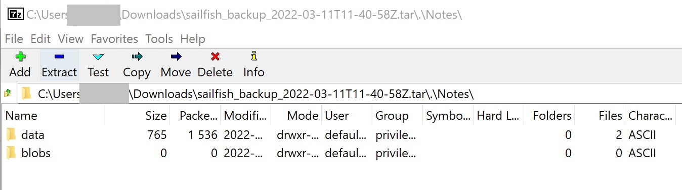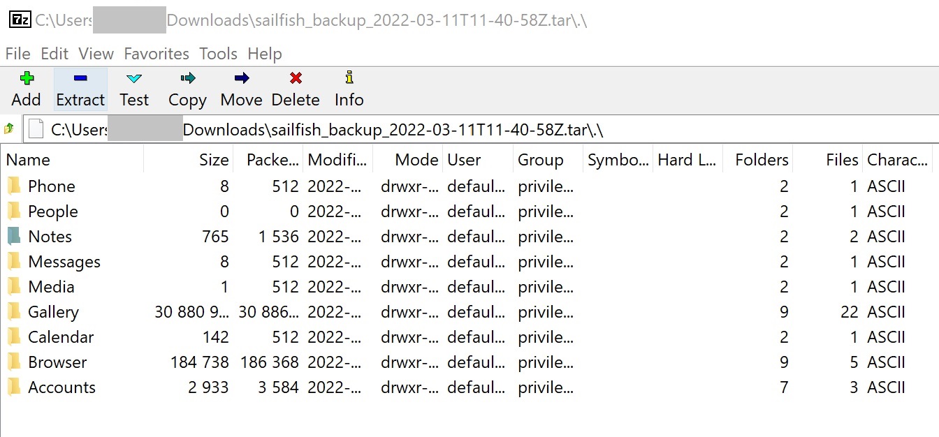 1) Open the backup container with 7-zip on Windows or with the Archive manager on Linux