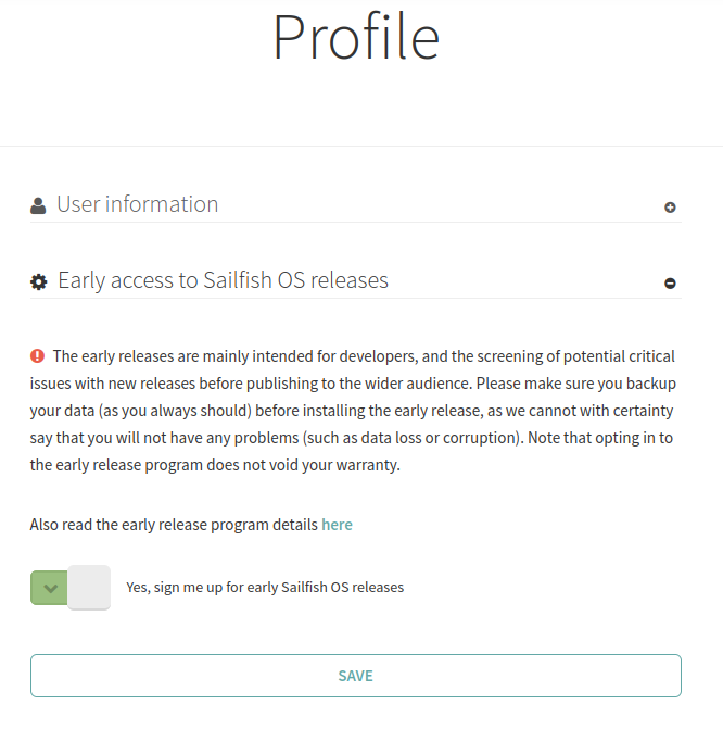 - Early access to Sailfish OS updates is meant primarily for advanced users, and/or developers