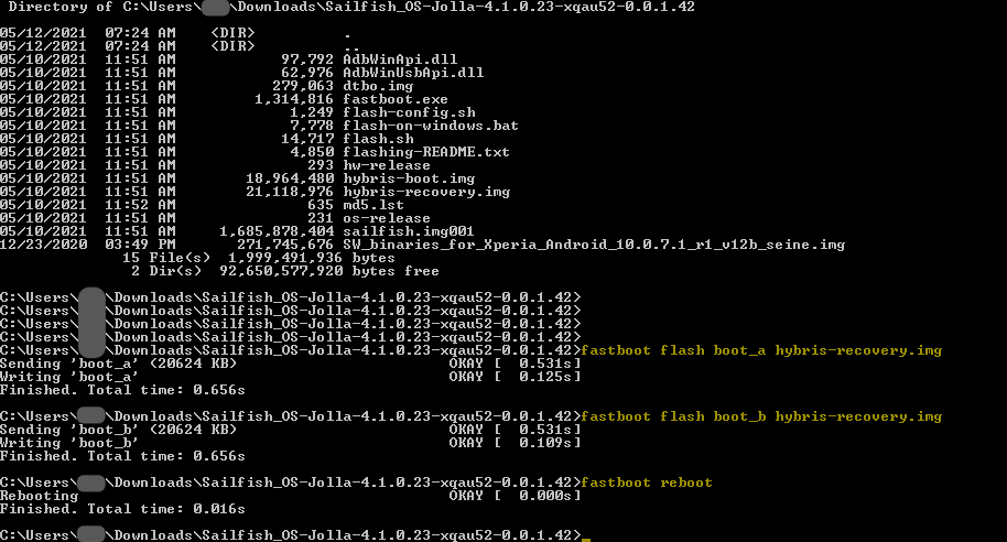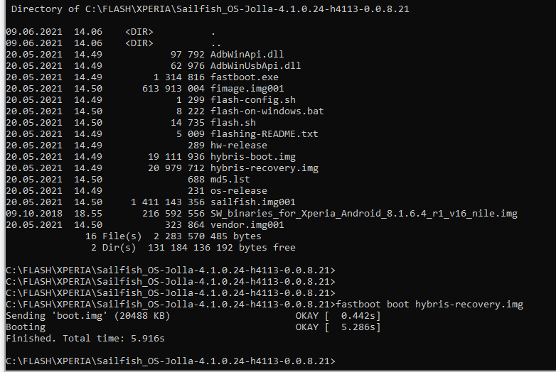 - You will need the same version of hybris-recovery.img as belongs to the Sailfish OS version of your phone currently. If you have updated your phone to the latest release then download the latest Sailfish OS image from Jolla Shop. The downloaded package contains the matching hybris-recovery.img. If you happen to have an older OS release on the phone get the hybris-recovery.img from the installation directory of that release. If you do not have it on your computer, contact us.