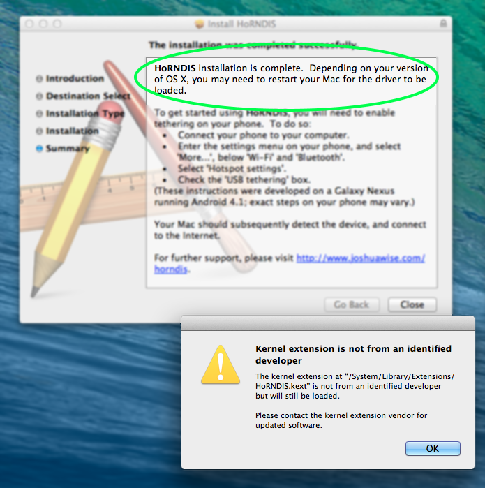 3) After installing the driver you may be prompted to perform a system restart and receive a notification about a “Kernel extension not from an identified developer”: