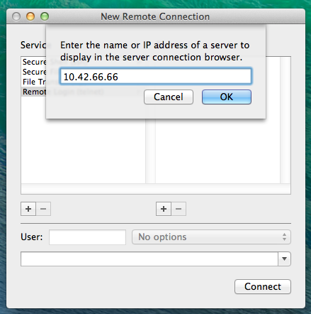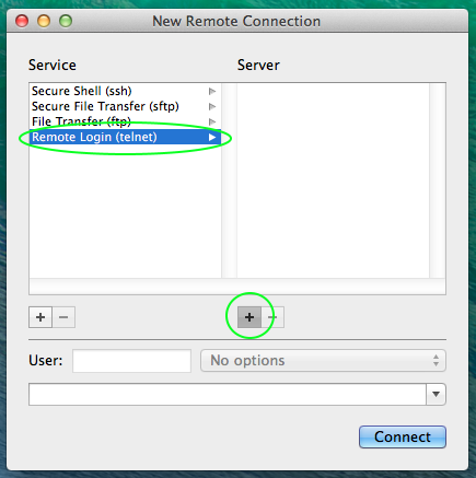 7) Click on “Remote Login (telnet)” and then the + -icon to add a server.