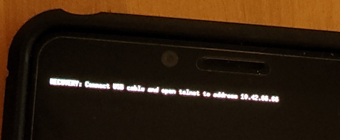 “RECOVERY: Connect USB cable and open telnet to address 10.42.66.66”
