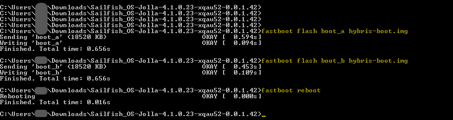 On these phone models, the boot image hybris-boot.img must be re-installed in the fastboot mode.