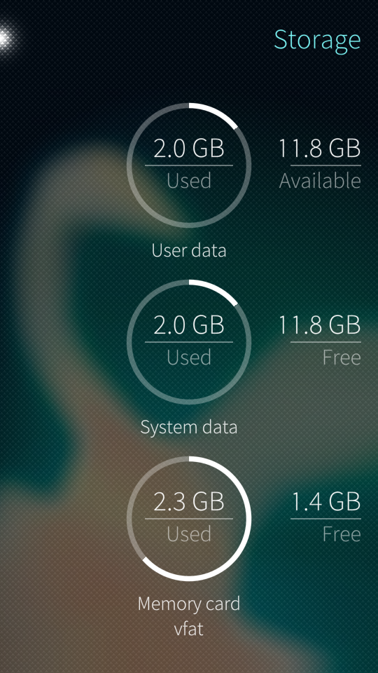 To find out the current status of your mass memory (disk space) on your device, open the menu “Settings > Storage”: