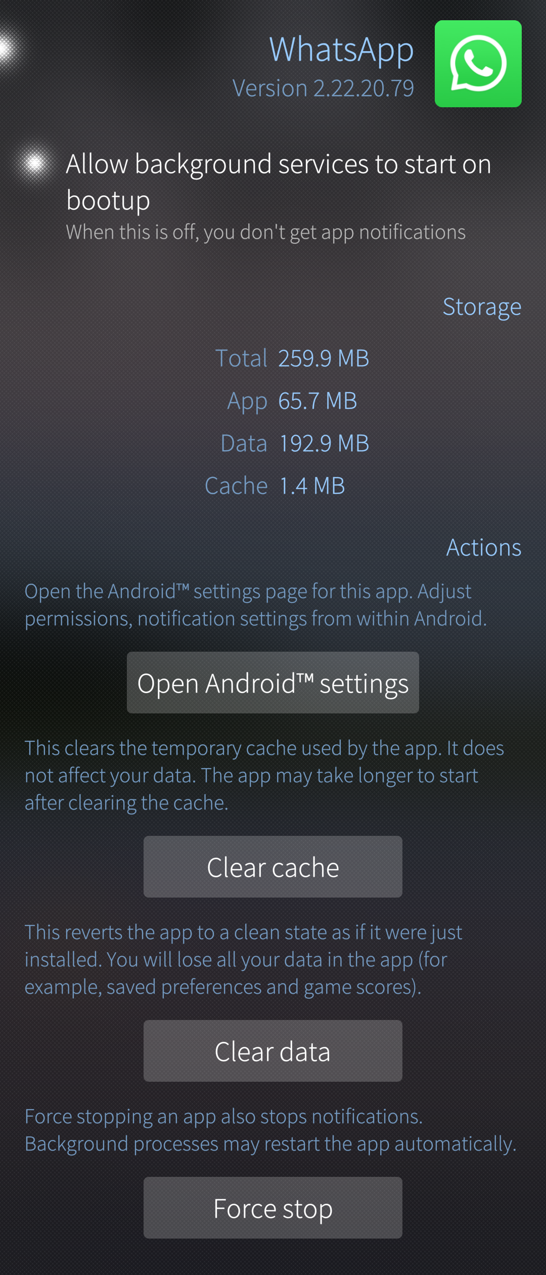 The screenshots below show the process of clearing WhatsApp’s data: