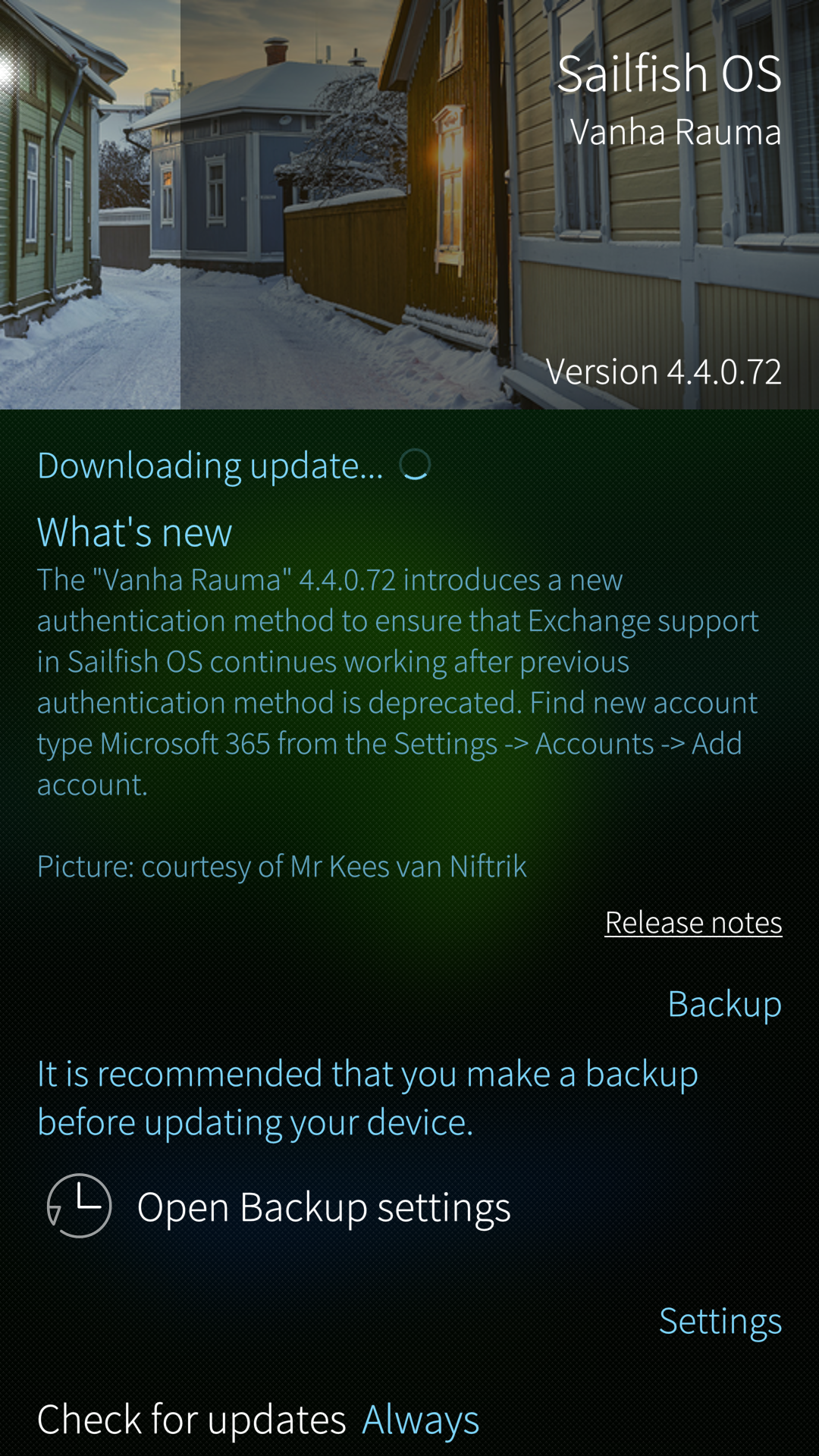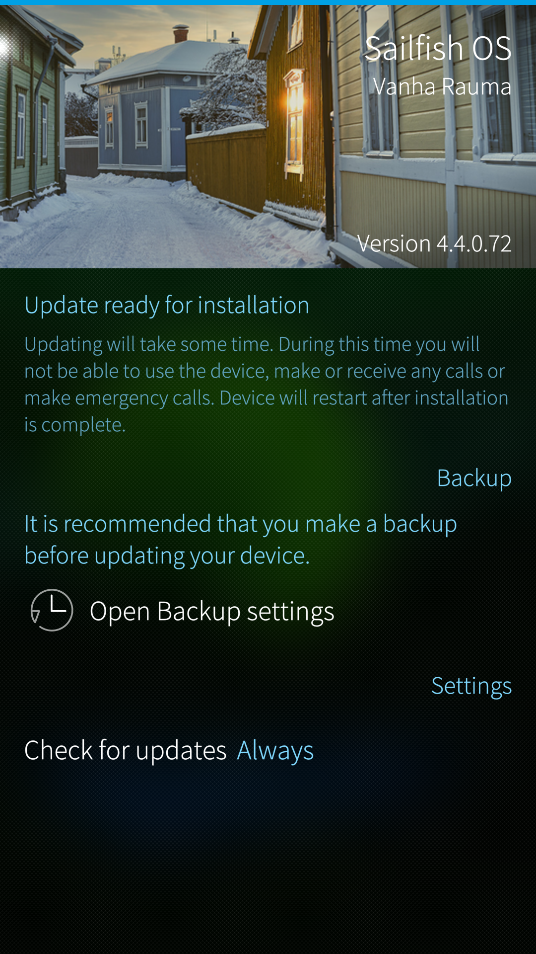 - Always read the release notes of the OS version you are going to install. The release notes are kept in Sailfish OS Forum, the latest on top of the list.