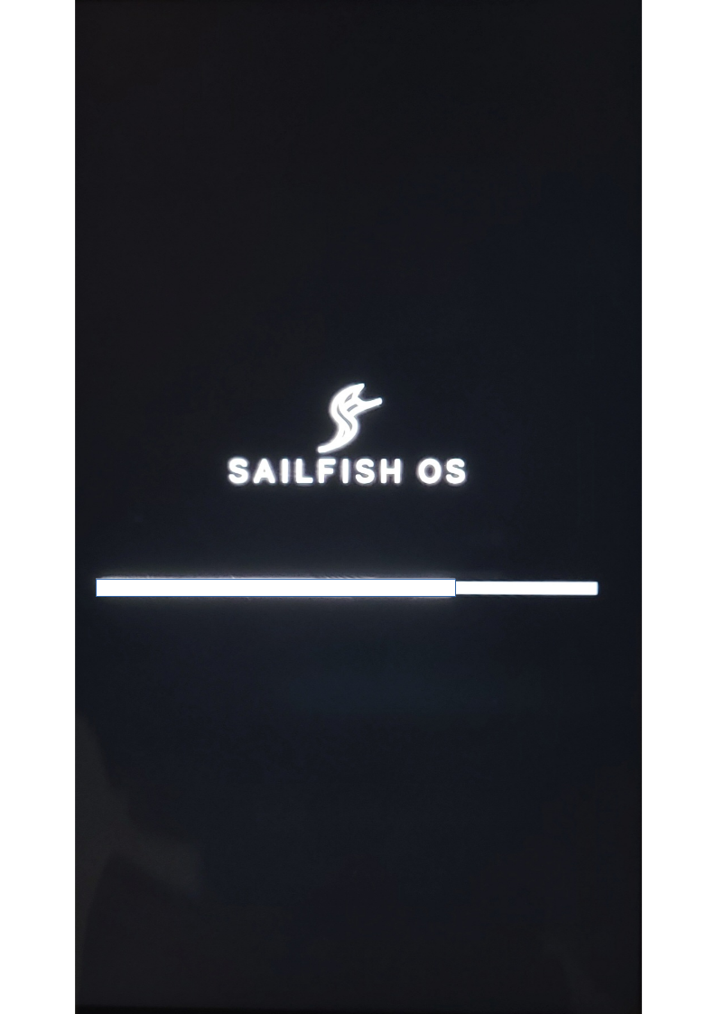 - Next, Sailfish logo will appear on a black background. There is a progress indicator line below it.