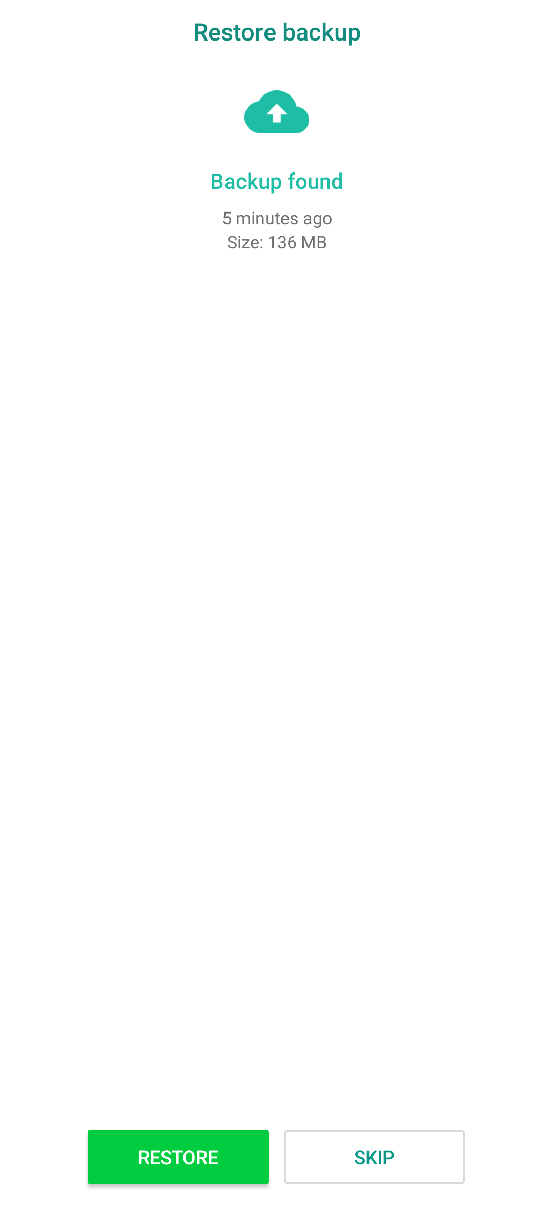 - Whatsapp should offer to restore your backup now. Let it do it.