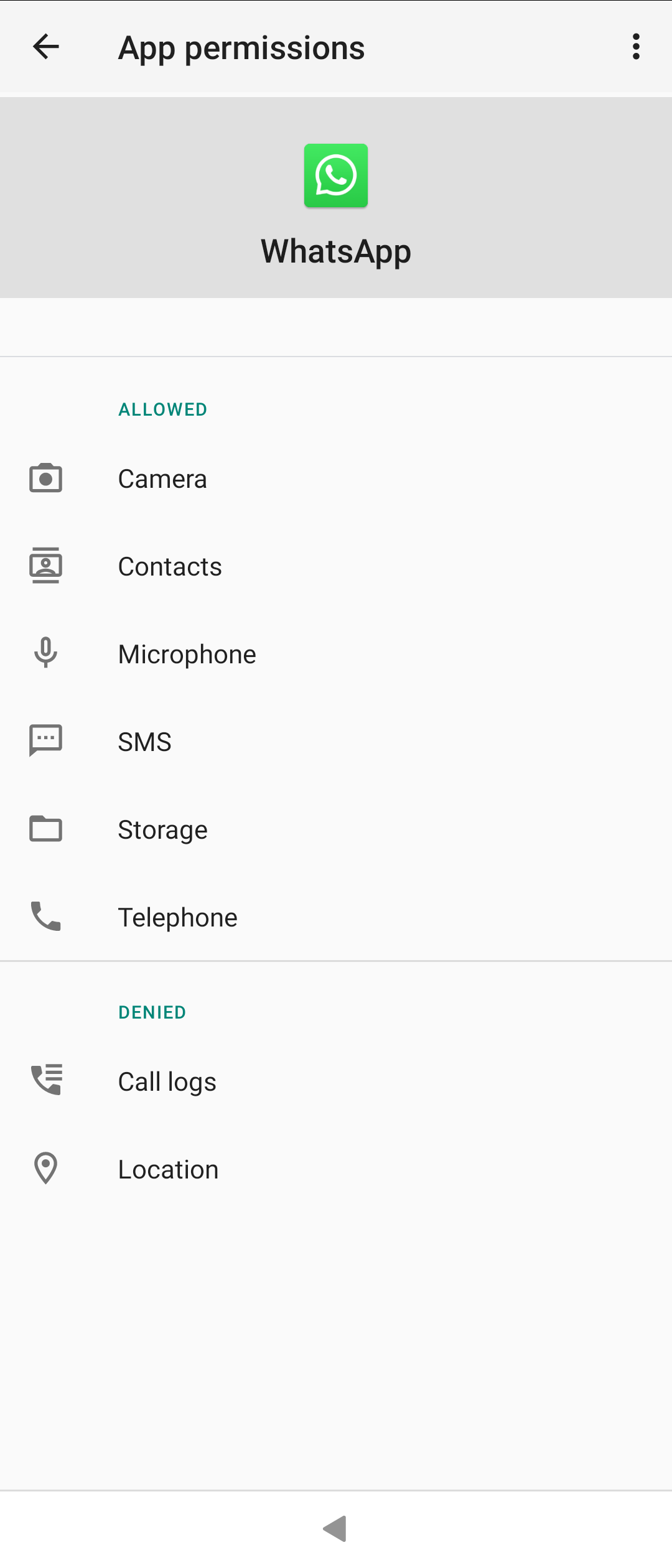 - Tap all other items you need for using WhatsApp. For full service, you will need to give all permissions. If you do not give the permissions now the app will keep prompting for them later. See the three pictures at step 5 of this chapter above.