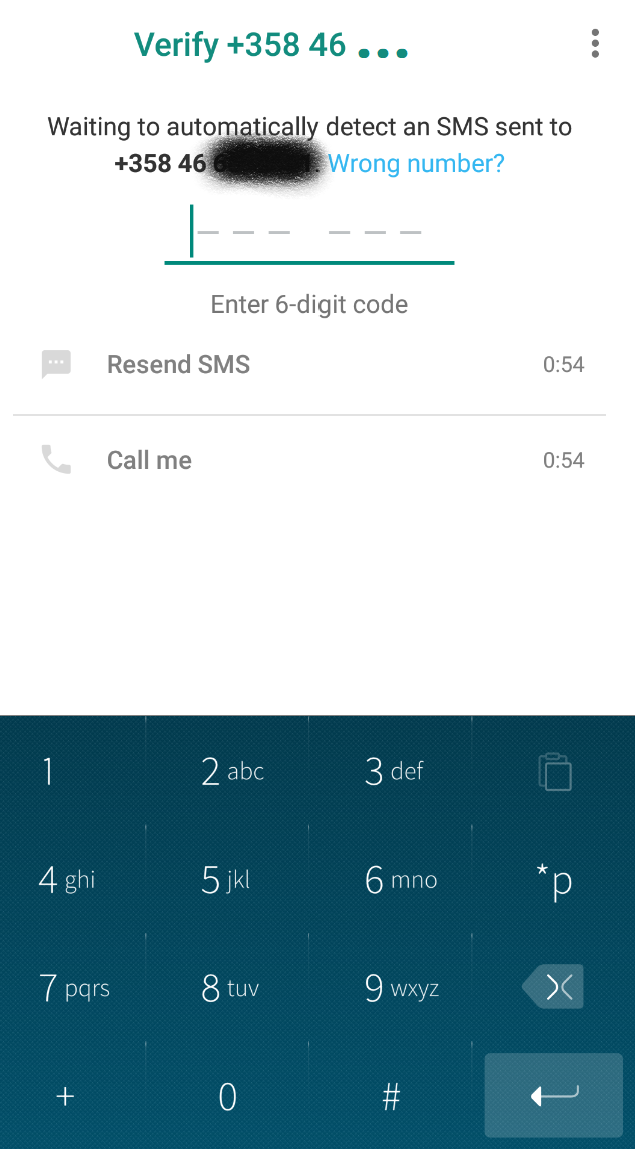 Next, you will be sent an SMS containing a 6-digit confirmation code (see the views below). Note that Sailfish OS may not detect the incoming SMS automatically but you may need to open the Messages app and check if you have received a text message from Whatsapp.